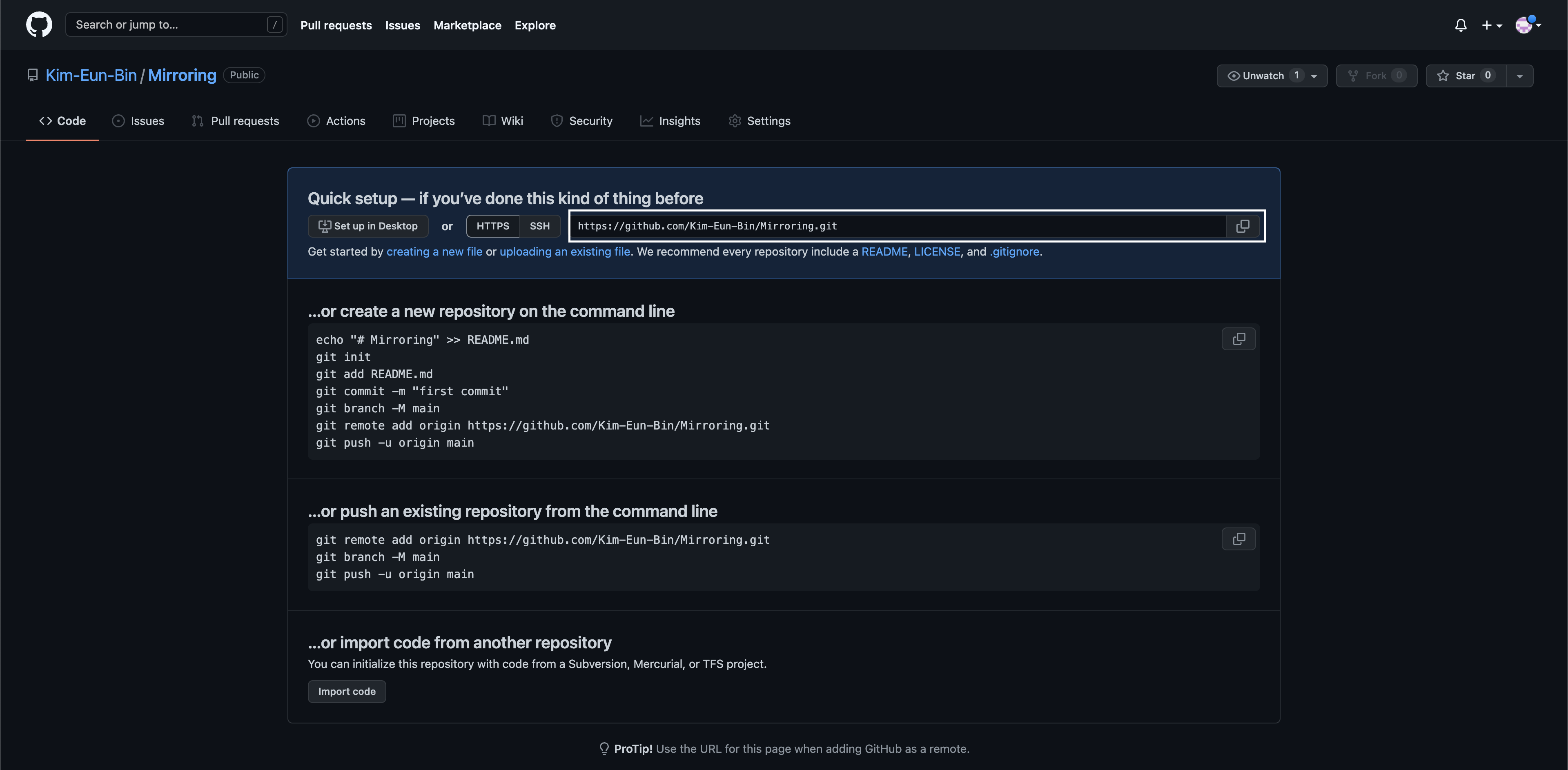 ex) Kim-Eun-Bin@github.com/Kim-Eun-Bin/Mirroring.git