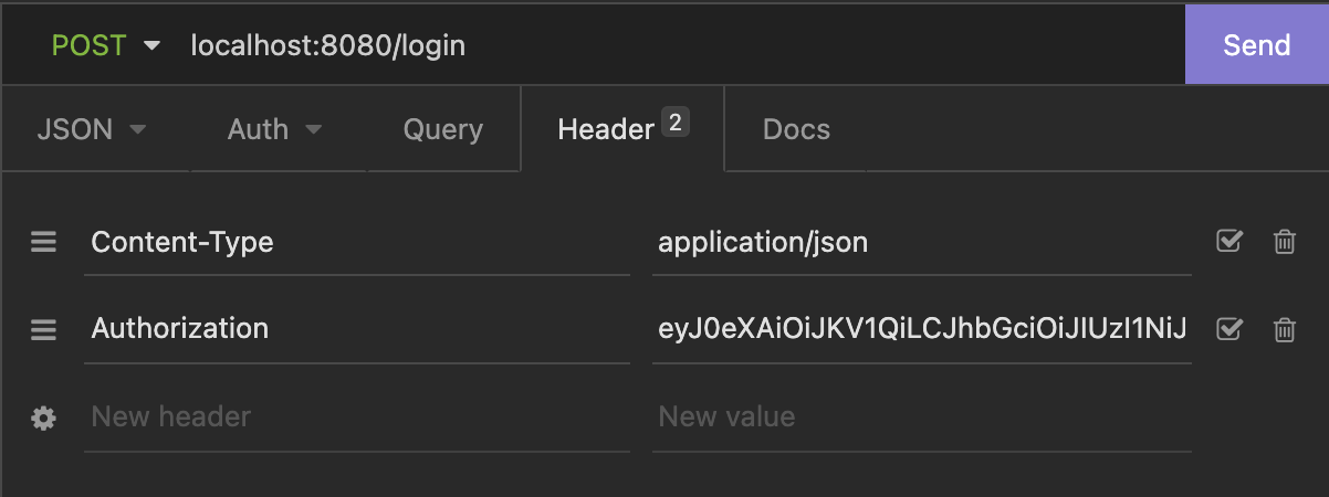 localhost:8080/login에 POST 요청으로 회원가입한 이메일 주소와 비밀번호를 전송합니다.