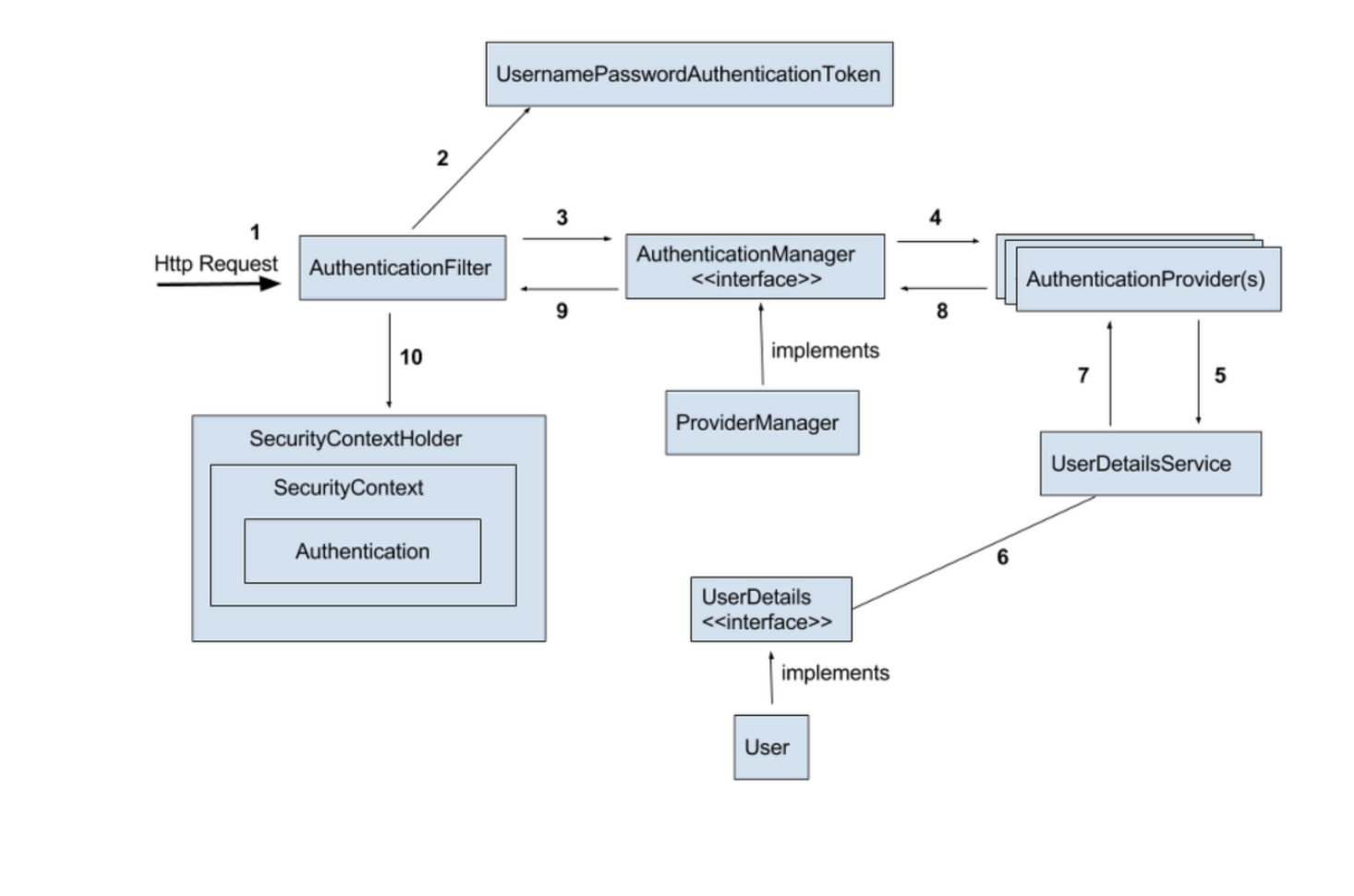 아래에 Spring security 구현에 필요한 구체적인 개념들을 정리해봤습니다.